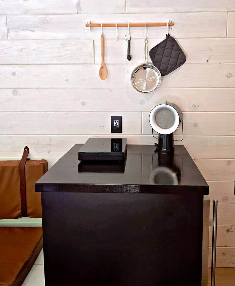 The kitchenette is stocked with essentials for simple meals, including an induction cooktop, under-counter refrigerator, dishes, utensils, and glasses. You’ll also find a gas grill outdoors for cooking under the trees. Coffee lovers will appreciate the French press, burr grinder, electric kettle, and fresh beans we provide, along with organic teas. A Sonos speaker makes it easy to play your own music, and a rechargeable lantern adds a cozy glow indoors or outside.